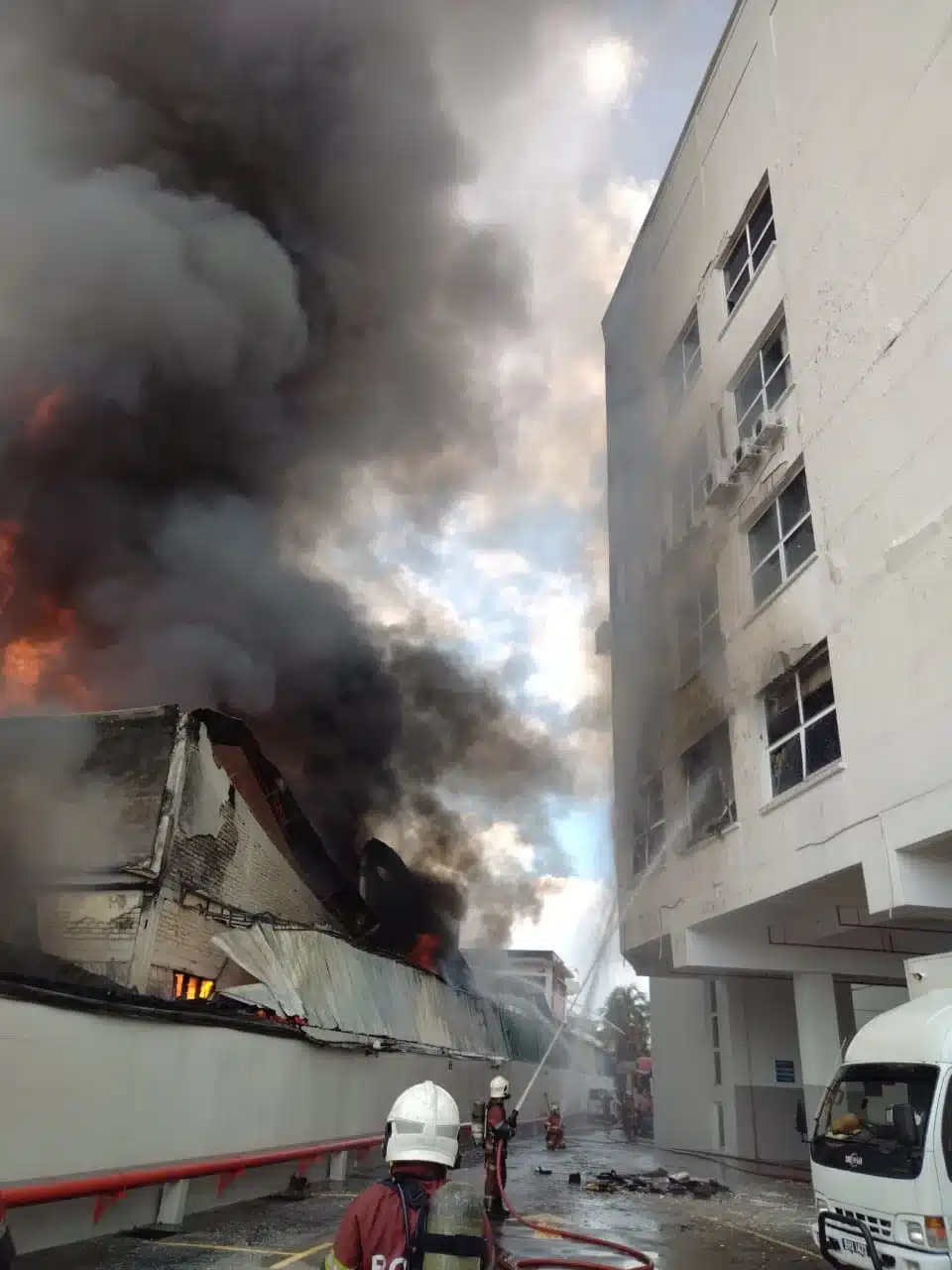 (吉隆坡8日讯)下午,灵市东南亚花园一间家具厂突发火灾,“Sea Park家具厂大火”迅速蔓延。居民第一时间发现火灾,立刻报警并采取撤离行动。消拯局接报后迅速调派34名人员前往现场灭火,警方则负责疏散围观群众。火势猛烈、浓烟滚滚,伴随爆炸声和黑色污水喷溅,现场情况紧张,但各方反应迅速有序。