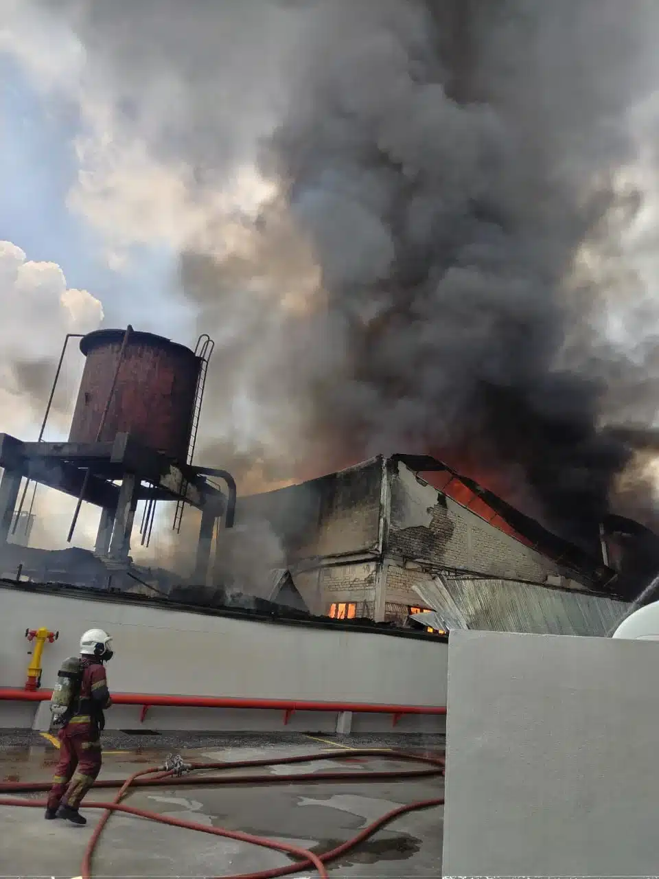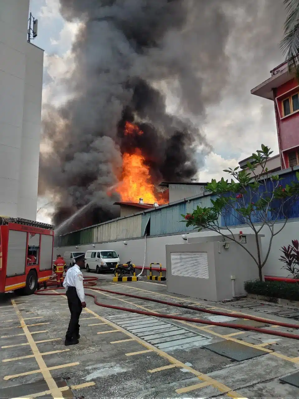 工厂占地约100乘50平方公尺,消拯员分组操作,多路喷水控制火势扩散。他们持续观察火势变化,同时评估周边建筑与油站安全,防止火焰波及邻近设施。消拯员现场的协调行动确保了火势得到控制,并保障居民撤离通道畅通。