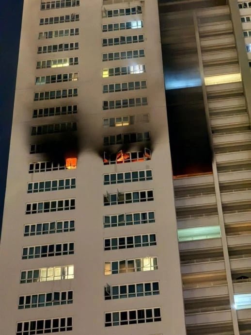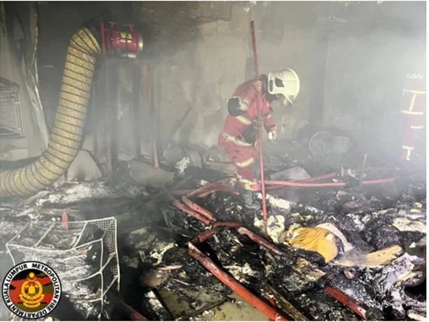 “满家乐Tiffani Kiara火灾” 吉隆坡满家乐Tiffani Kiara by i-ZEN高级公寓昨晚8时许发生严重火灾,38岁艺术家黄裕兴因被困阳台不幸身亡。警方证实,死者为自由职业画家,自2021年起独自居住在26楼单位。火灾导致单位完全焚毁,面积约1500平方尺,现场残骸严重。